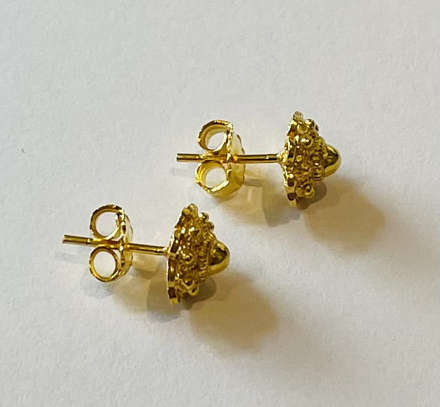 Vergulden zilveren oorknopjes met een Zeeuwse Knop met een doorsnede van 8 millimeter. Fraai bewerkt en van de beste kwaliteit.